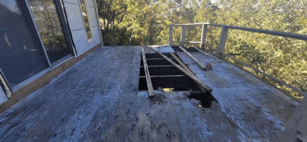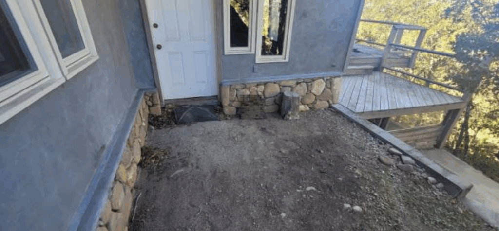 Additional issues include a rotted, unsafe deck that should be removed, surface rock added around the foundation, and multiple signs of decay and poor workmanship. The home’s structure can be restored, but major reinforcement and careful engineering work will be required to bring it safely back to standard.