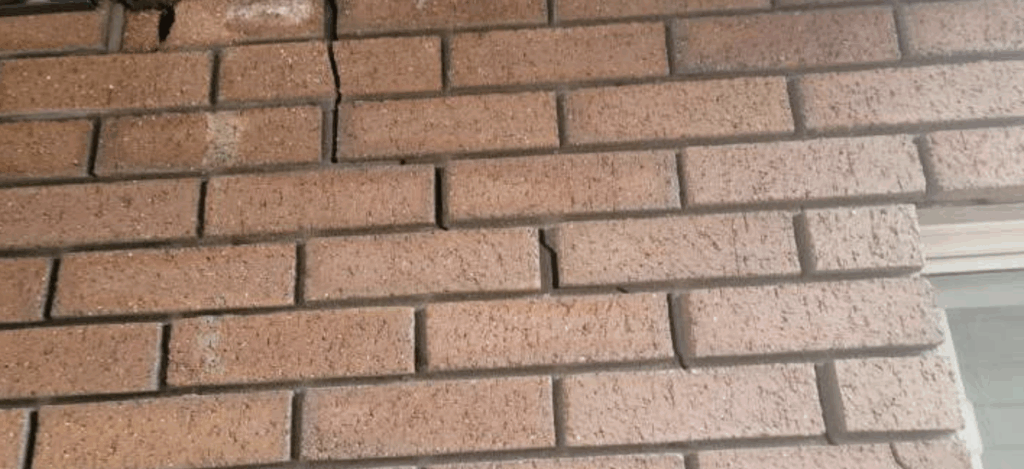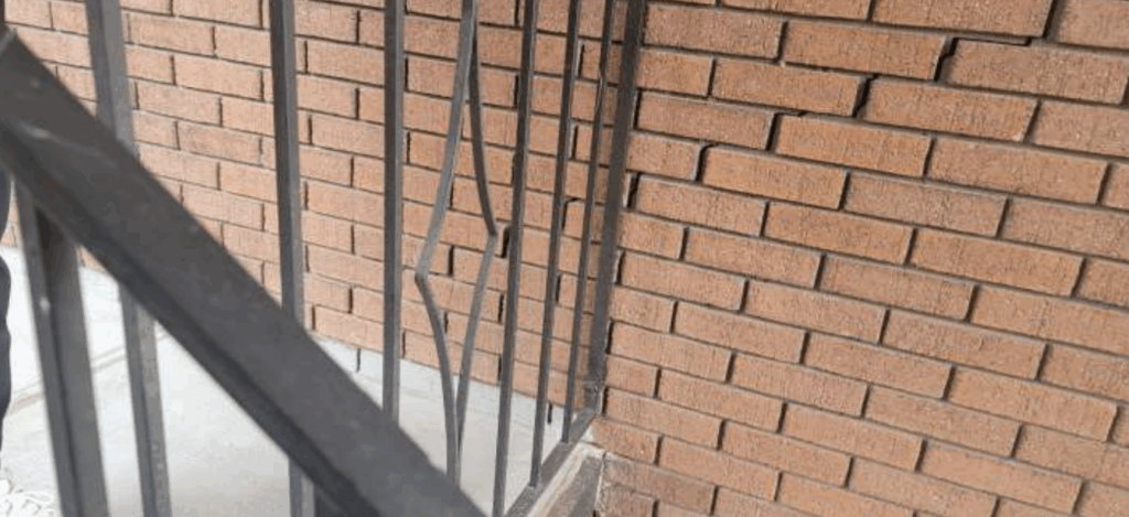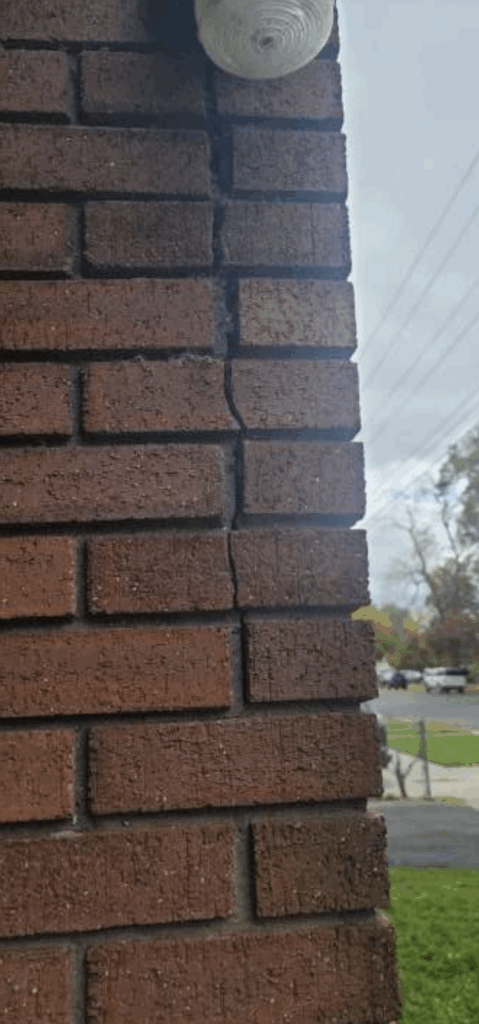 Built in 1977, this property in Provo Utah consists of two twin masonry structures positioned on a gentle slope. The northern building drains to the north, while the southern building—showing the most distress—drains to the south. Both are exhibiting outward rotation along their west sides, most visibly through cracking and bulging in the masonry. At the northwest corner of the south structure, displacement exceeds half an inch and may approach a full inch in some areas, suggesting differential settlement beneath the footing.