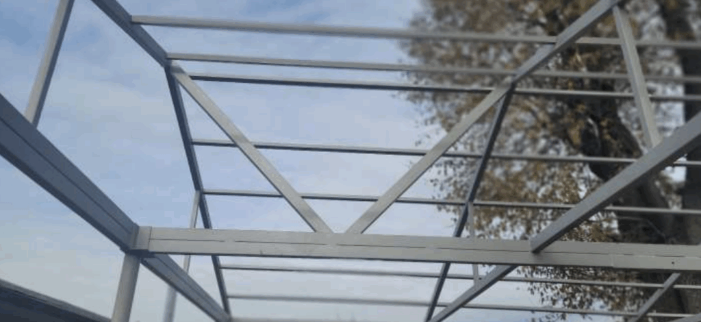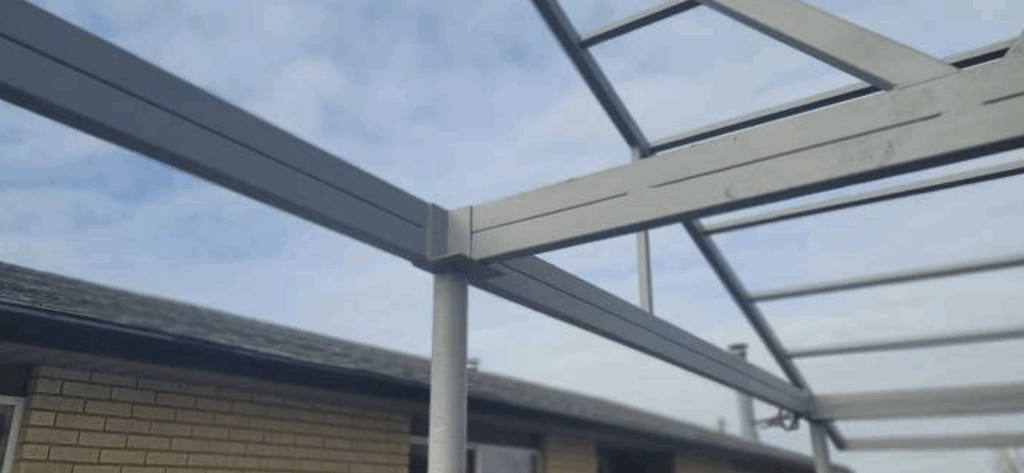 Each roof face measures approximately 14 feet 8 inches, and the total weight of the steel structure comes in at around 2,980 pounds. That load is not a problem when it is understood, distributed, and supported correctly. In this case, it is. The loads flow from purlins to rafters, from rafters to beams, from beams to posts, and finally into the footing below. This is how typical structures are meant to behave.