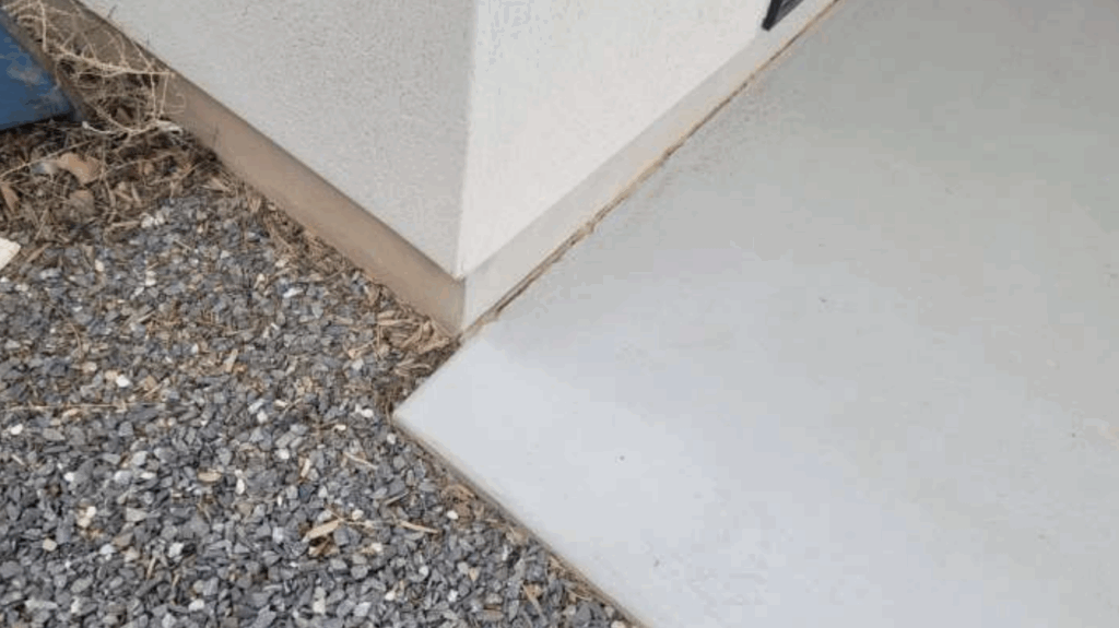 These observations reinforced what had been suspected during the initial inspection. The home is continuing to move. What was subtle a year earlier has now become more apparent. Exterior conditions further supported this conclusion. Stucco cracking is inevitable on almost every home, but the cracking observed here was not typical hairline shrinkage. Cracks at wall intersections and post corners suggest differential settlement, where portions of the structure are moving at different rates. This type of cracking reflects stress within the system rather than simple surface issues.