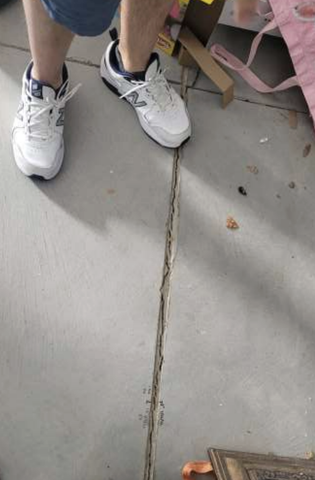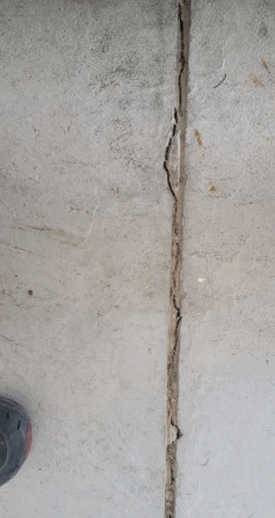 During the inspection, we noted that a third party had previously measured the back side of the home and found the basement floor to be approximately one-half inch lower than expected. This measurement aligns with the visual and physical evidence observed on site. Settlement of this nature, especially so early in a home’s life, suggests that the supporting soil is not performing as intended. When the soil beneath a foundation softens, compresses, or shifts, the load above it no longer bears evenly, and movement becomes inevitable.