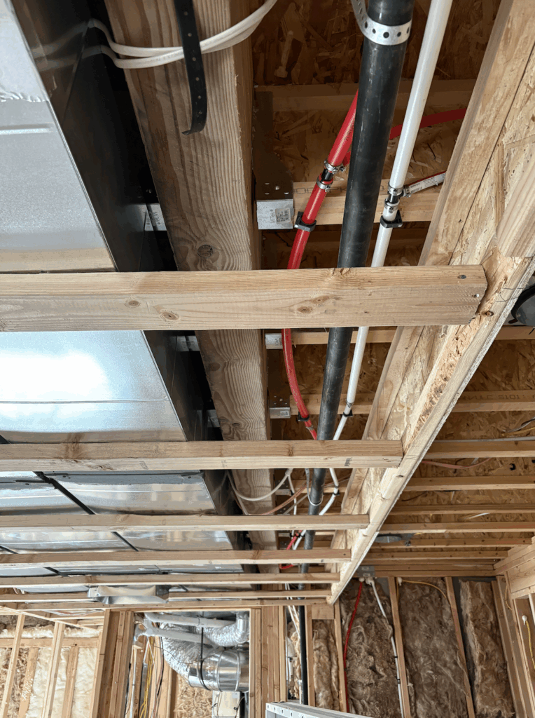 The builder who installed these windows may have tried to replace two 2x8s with three 2x4s to attempt to transfer the same amount of load; however, this is not how structures function. Increasing the base of a header by 1.5x does not even come close to the structural stability that doubling the height of the header induces. This lack of good judgment put this window header on the verge of passing or failing code. Calculations will be done to properly determine if this header will still qualify to support the load, but regardless, this is really cutting it close.